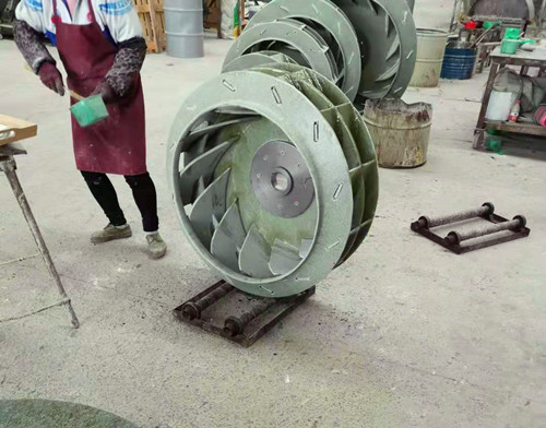 作為風(fēng)機(jī)的主要轉(zhuǎn)動裝置,玻璃鋼風(fēng)機(jī)葉輪使用的原材料是乙烯基樹脂與玻纖氈。主要的制作工藝為手糊工藝,葉輪的蓋板、葉片都是單獨進(jìn)行制作之后再組裝起來的。
