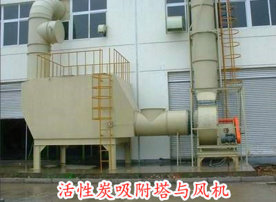含塵氣體由玻璃鋼離心風(fēng)機(jī)提供動(dòng)力,正壓或負(fù)壓進(jìn)入塔體,由于活性炭固體表面上存在著未平衡和未飽和的分子引力或化學(xué)健力。
